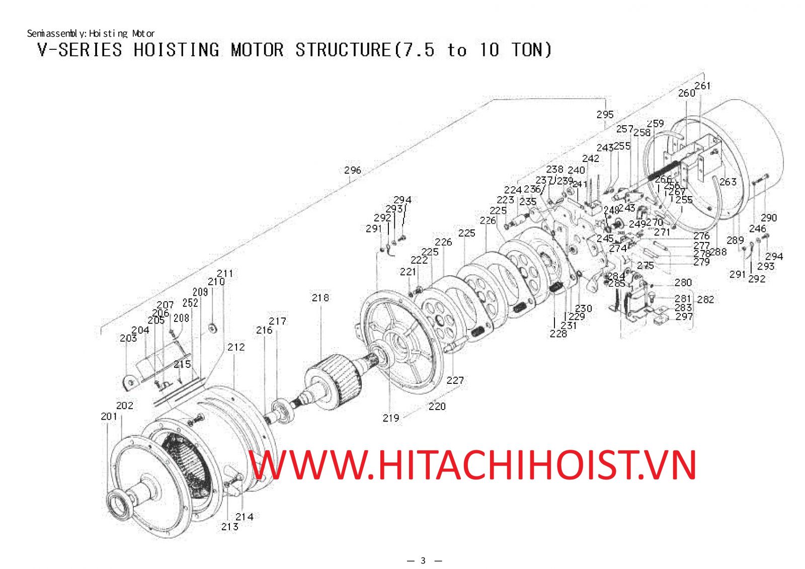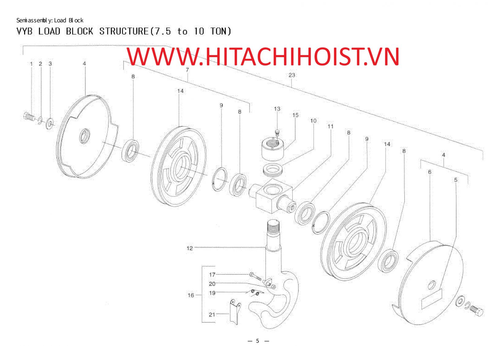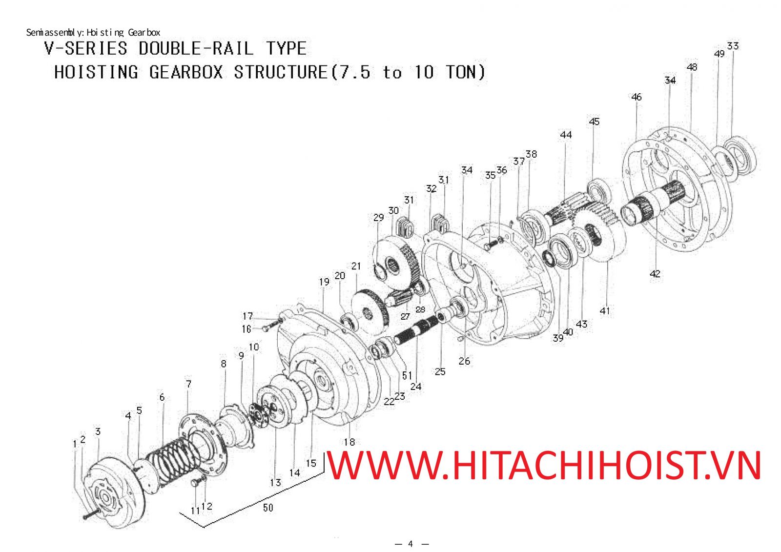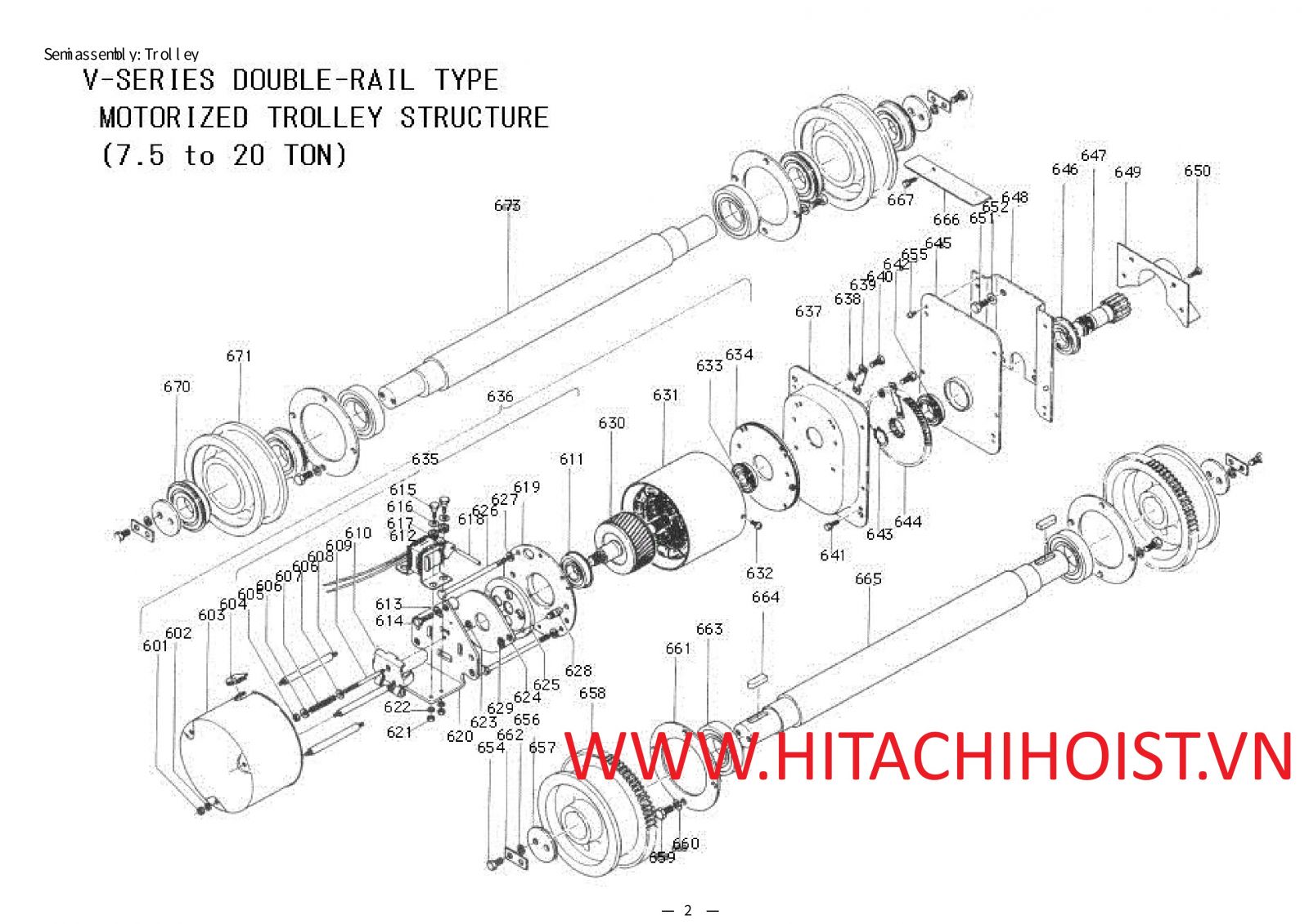 Tài liệu tra cứu phụ tùng phụ kiện palang cáp điện dầm đôi Hitachi model 7.5D-T55 7.5HD-T55 10D-T55 10HD-T55 20D-T55 20HD-T55